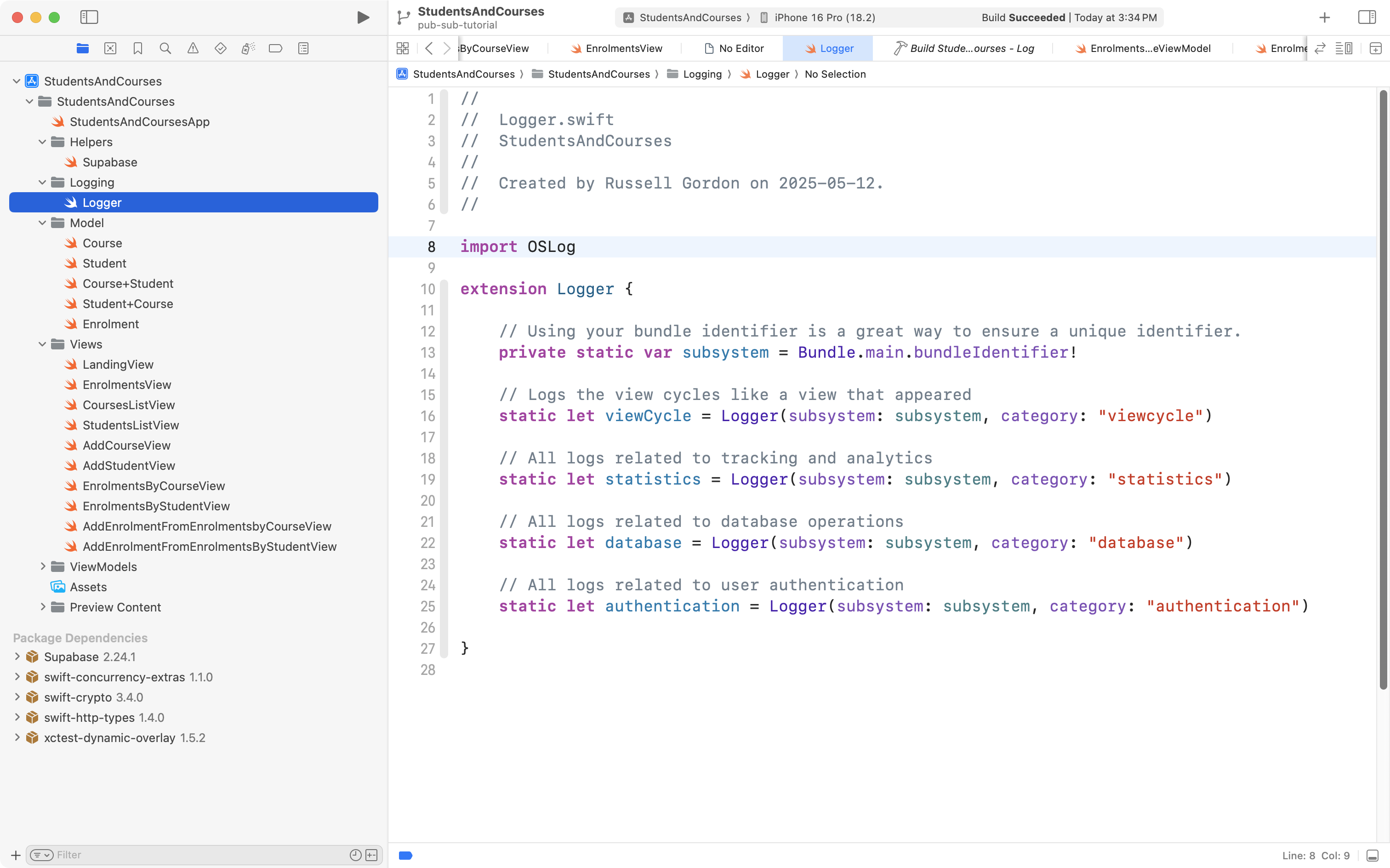 Switched to Supabase 2.24.1 and added support for structured (categorized) log messages.