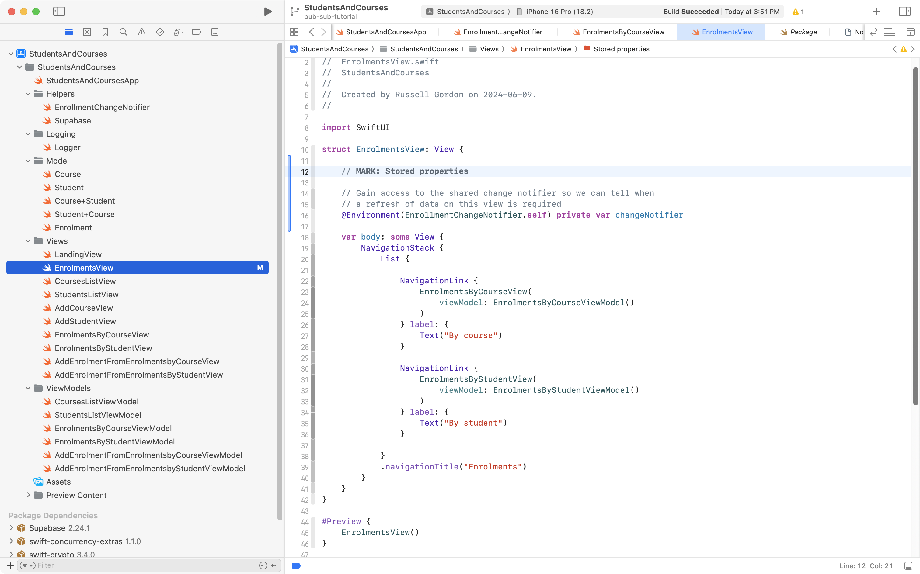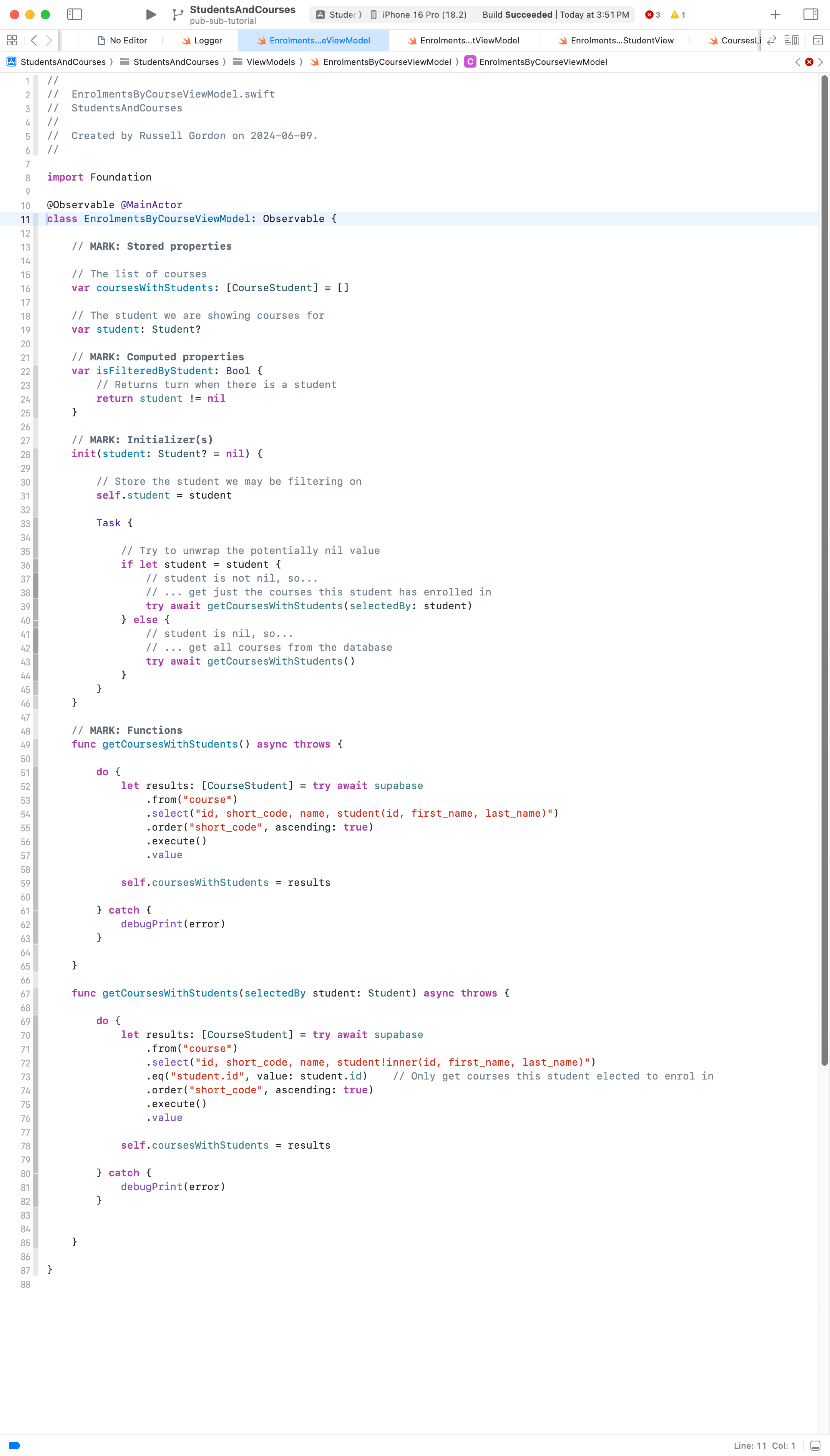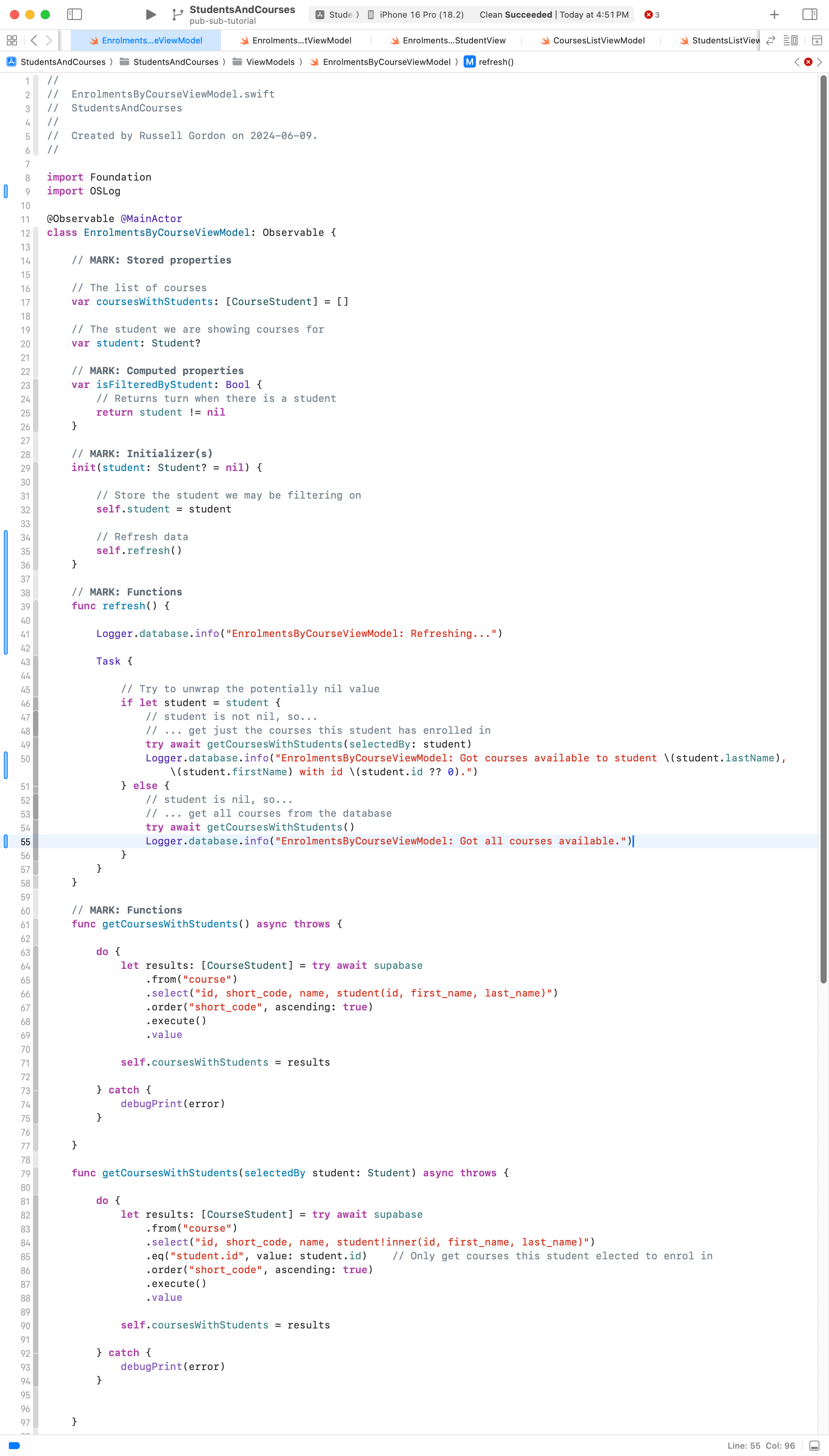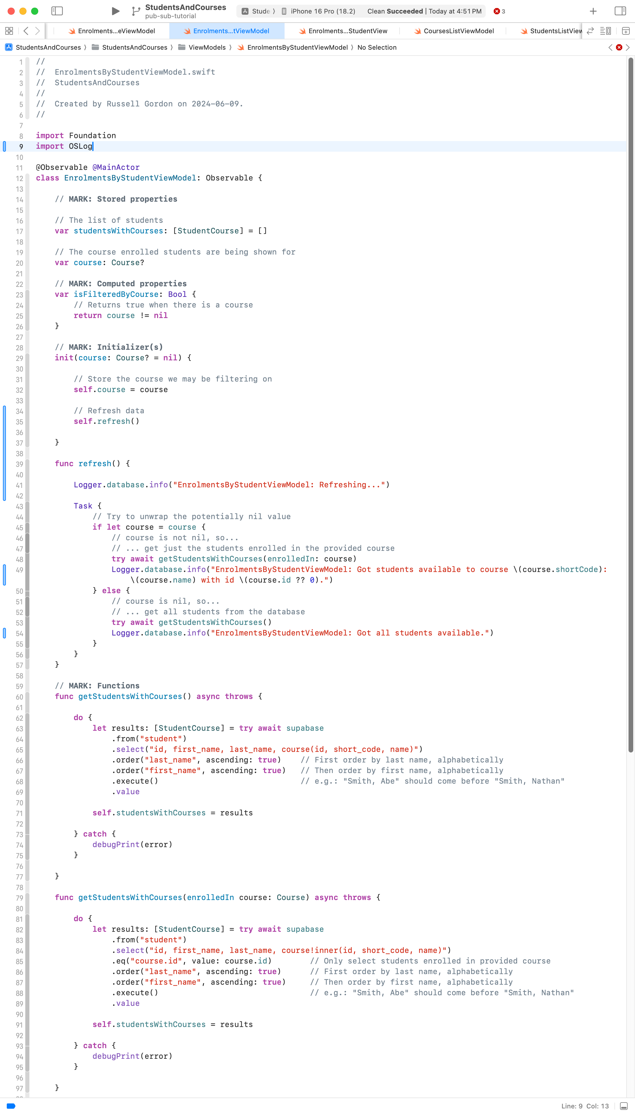 Before reviewing this lesson you are encouraged to have at least read through Querying Multiple Tables, Pt. 2 and have downloaded the finished form of the Enrolments app to try it out.