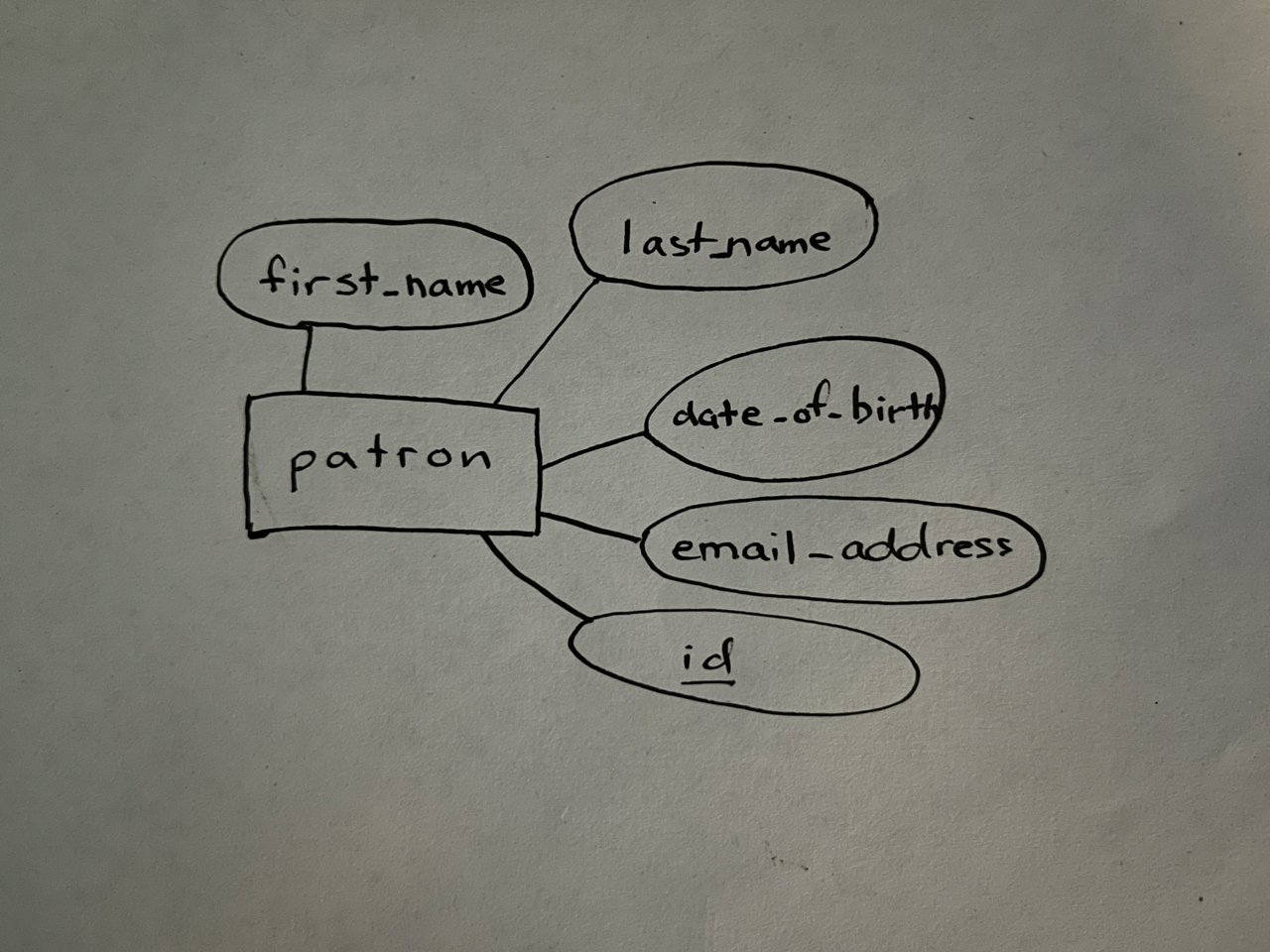 In an ER diagram to model the data needed to organize a library service, the patron would be an entity. Attributes of a patron might include:
