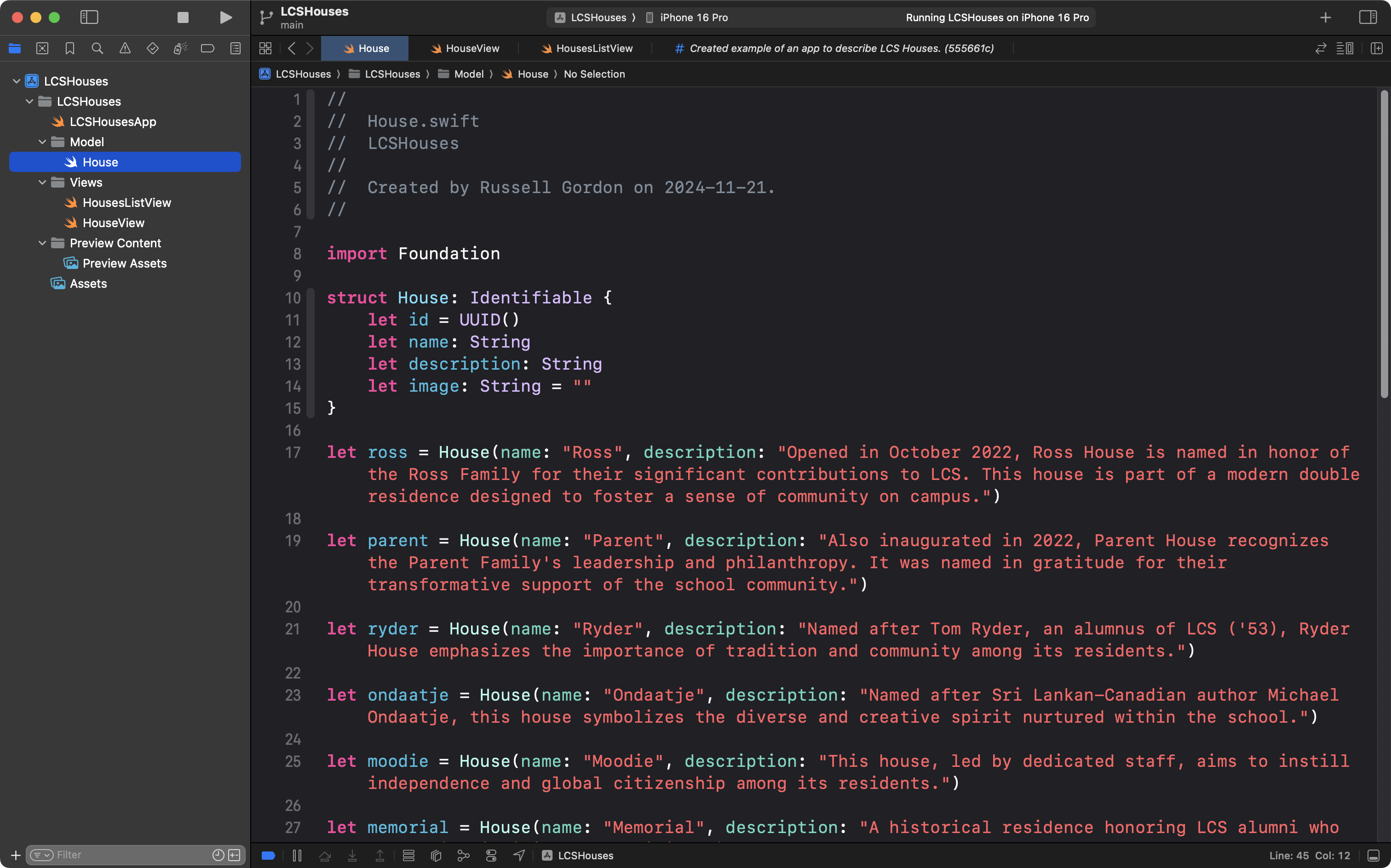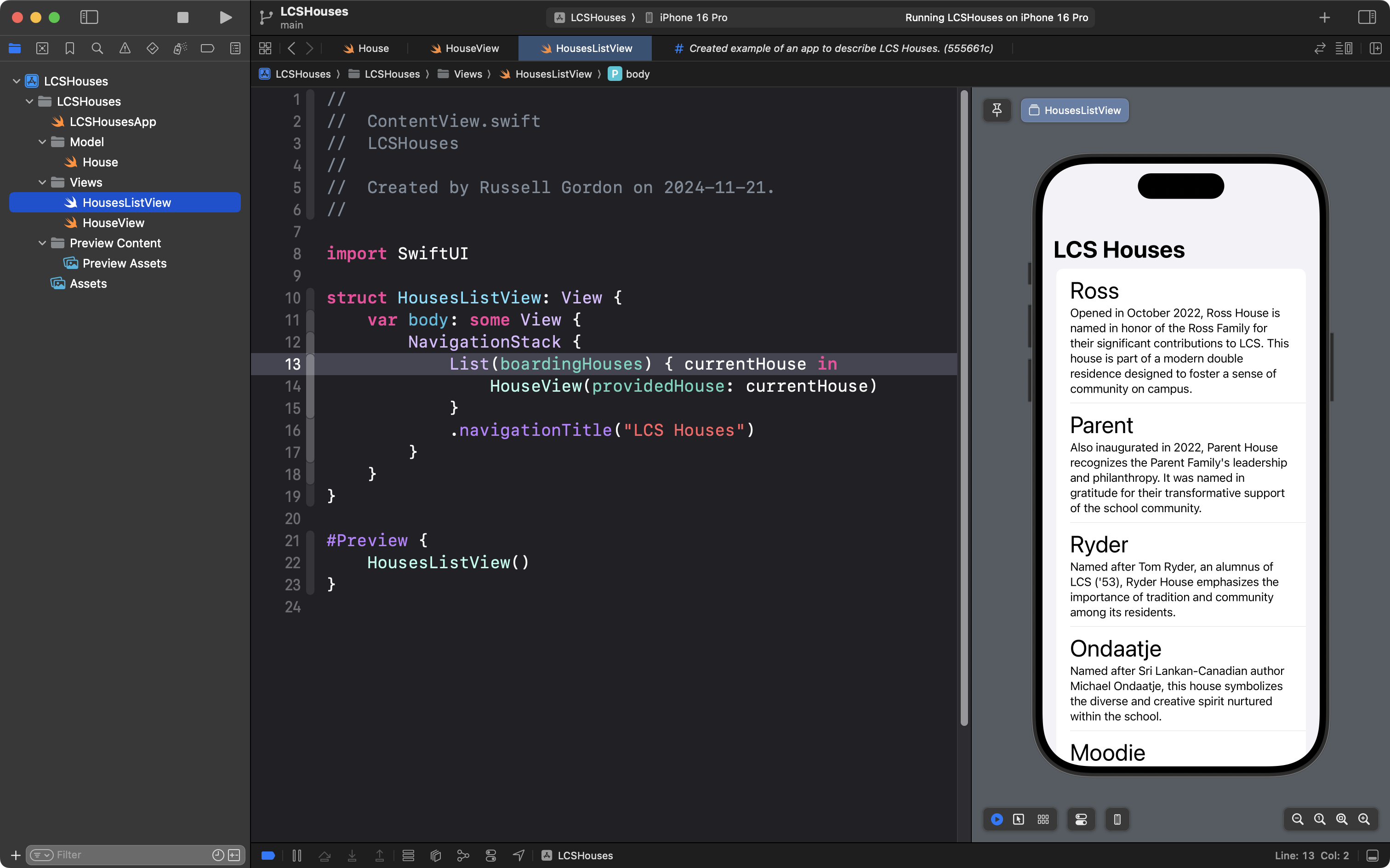 … and then in the view, we needed to iterate over the array – in this case named boardingHouses – using List from the SwiftUI framework:
