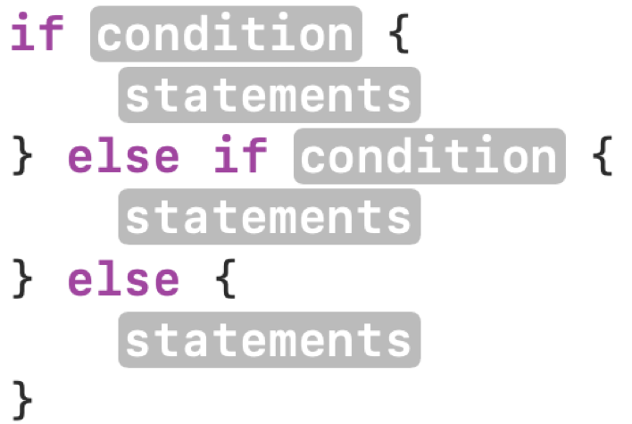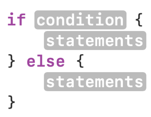In that example, only when the condition evaluates to true does the block of code inside the { } brackets get selected to be run. Otherwise, the block of code is skipped.