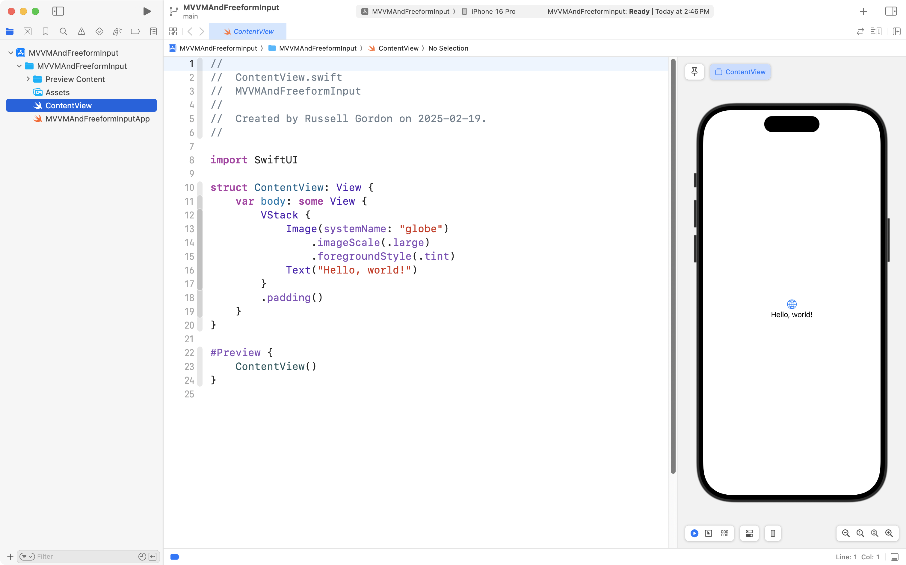We will first work within a playground, so that we can focus on learning how the MVVM design pattern works at the model and view model layers.
