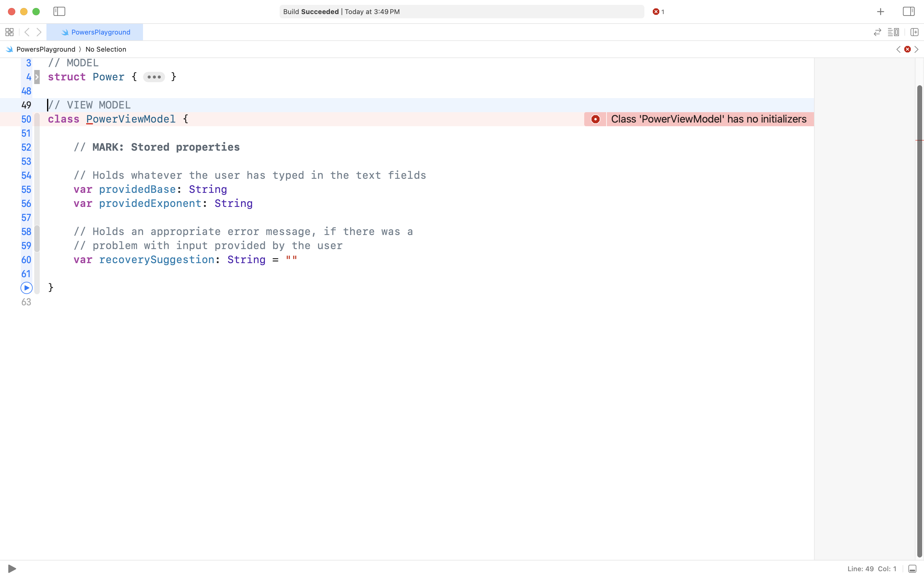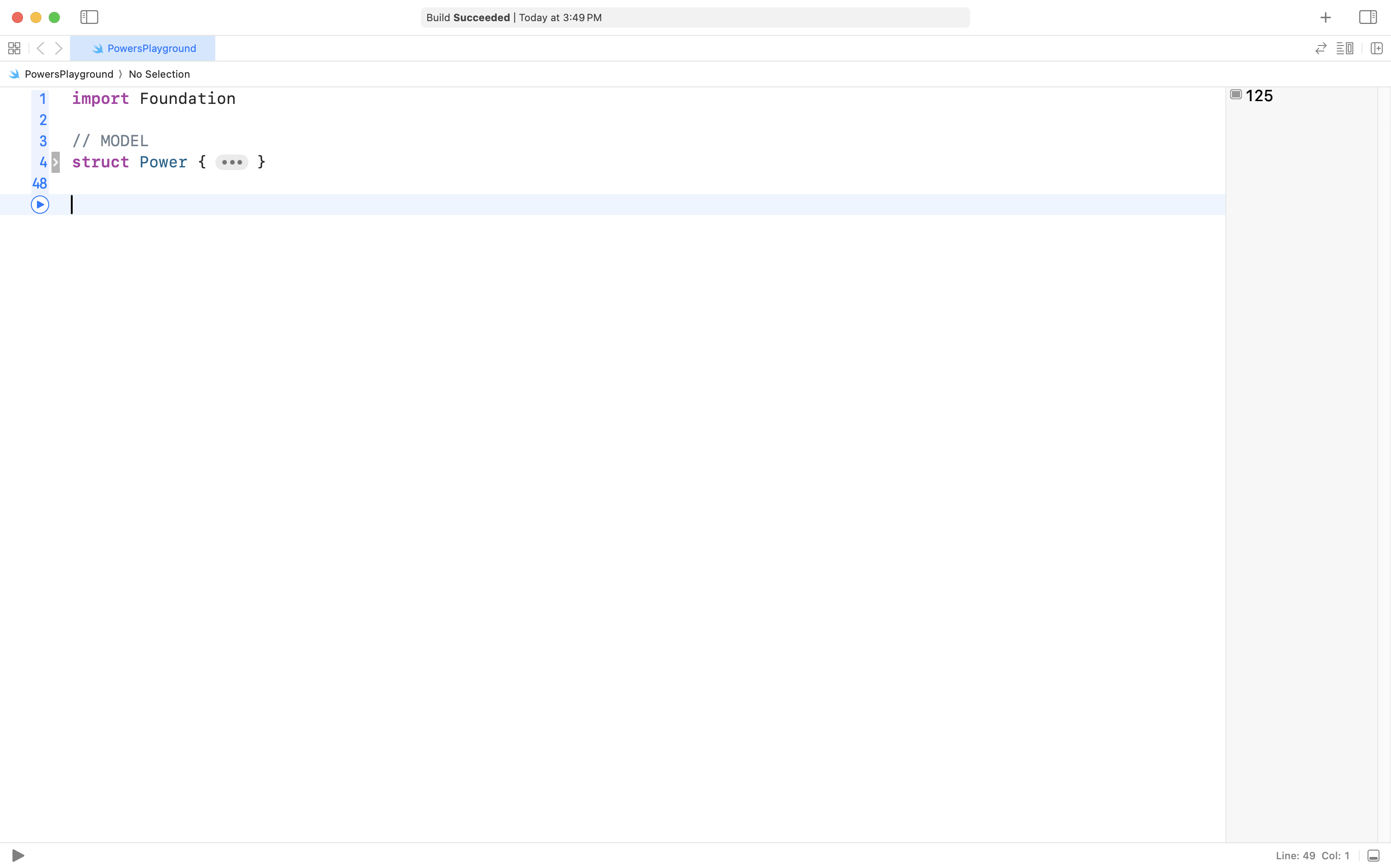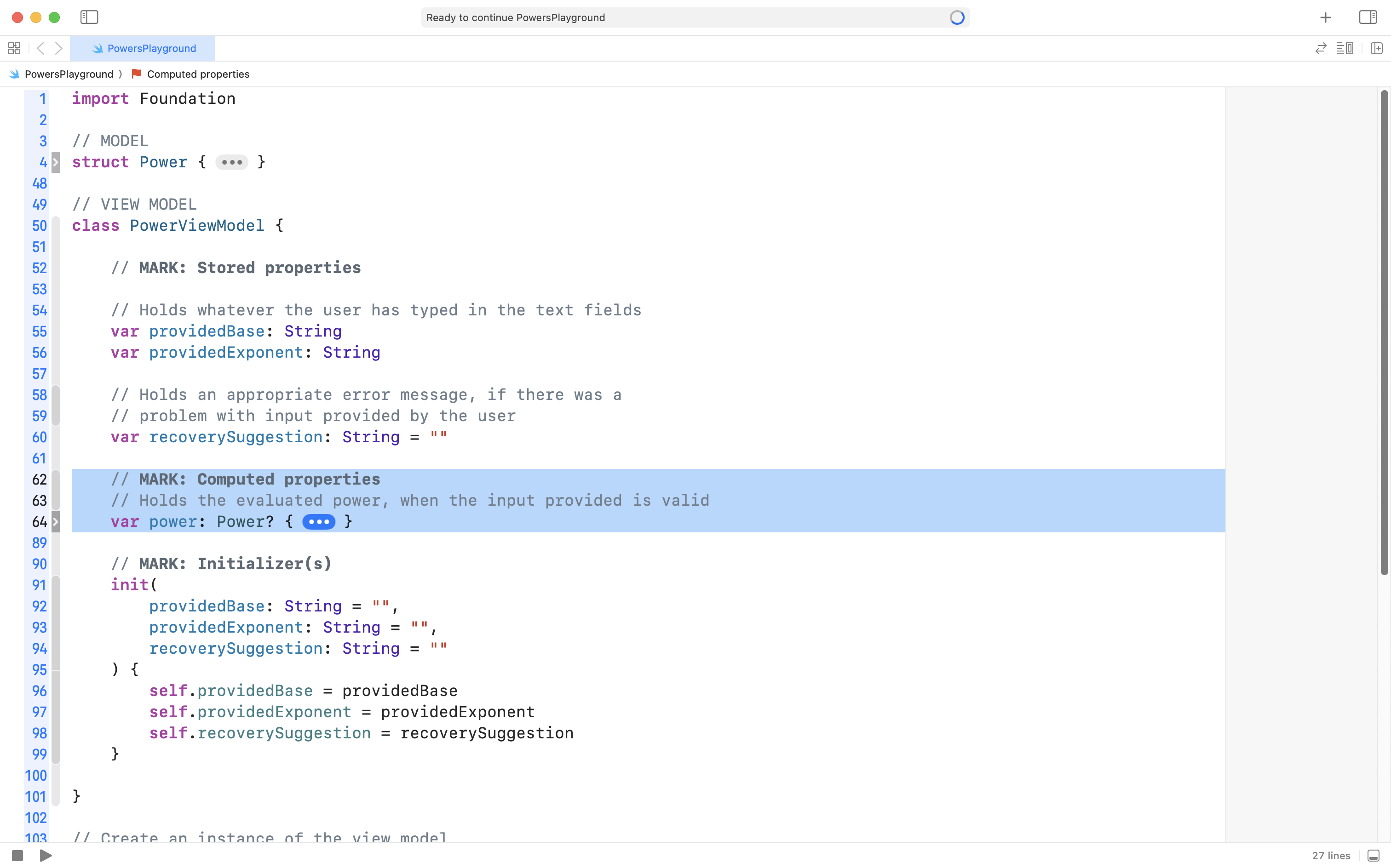 Add the following code to your Power structure, after the two stored properties, but before the closing curly bracket of the structure: