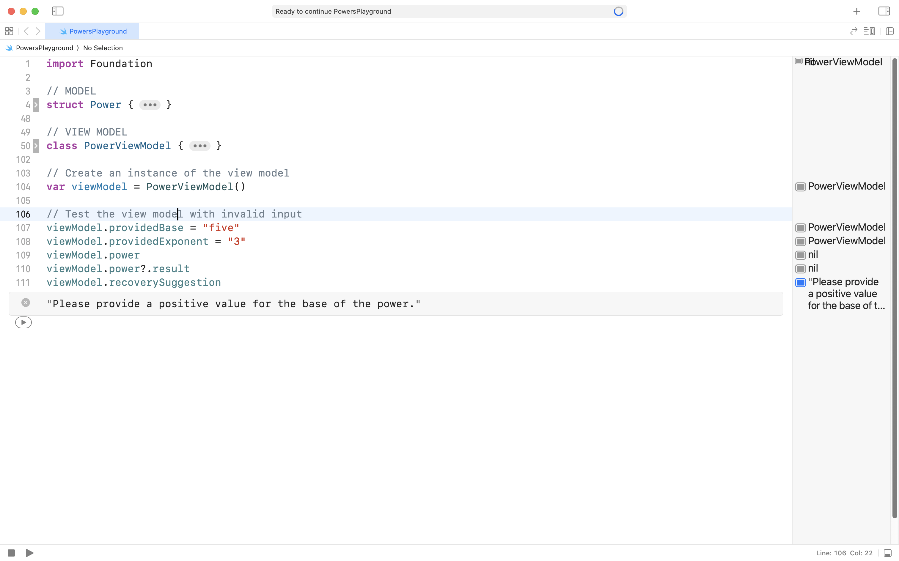 Please create a new macOS playground named PowersPlayground, like this: