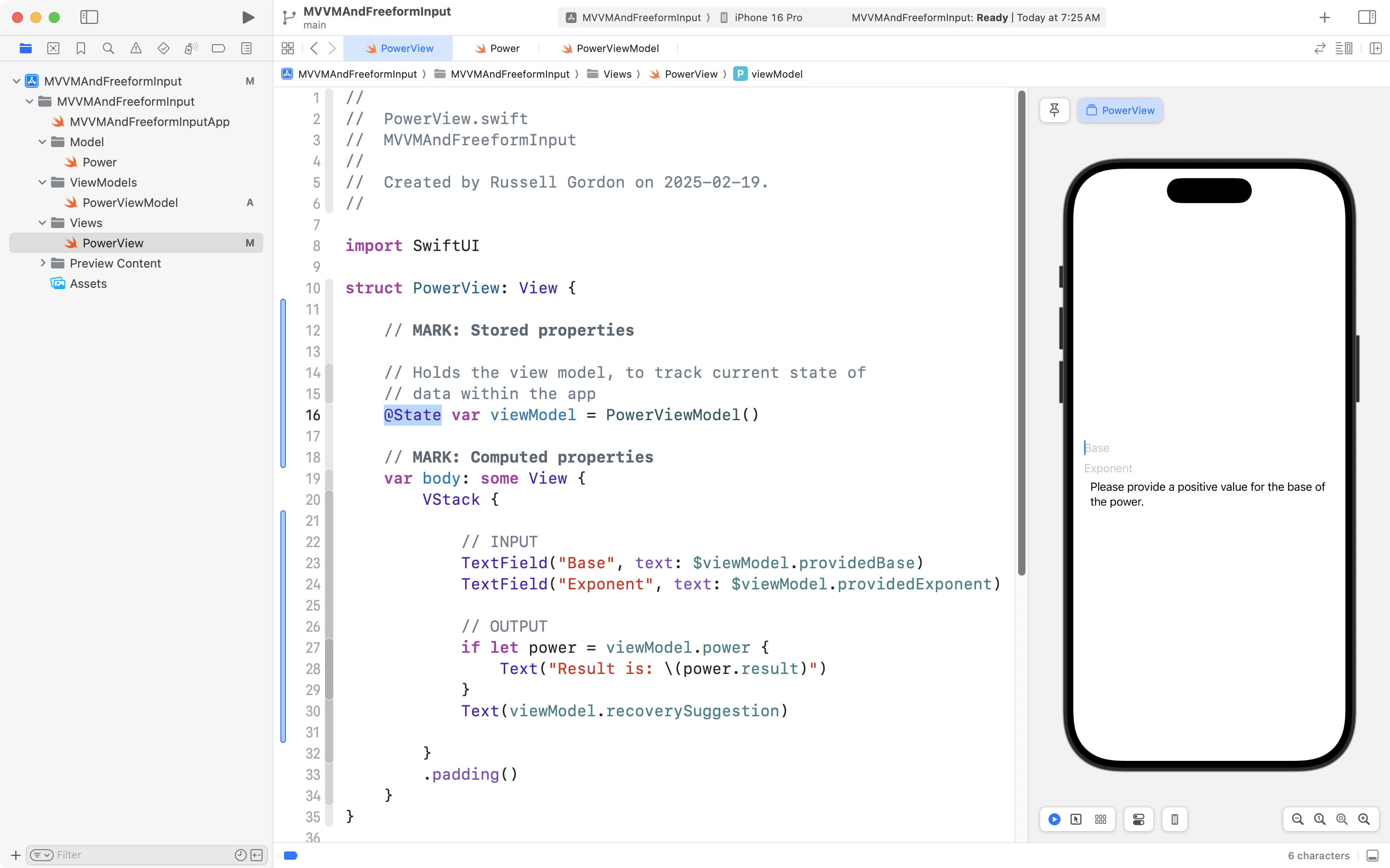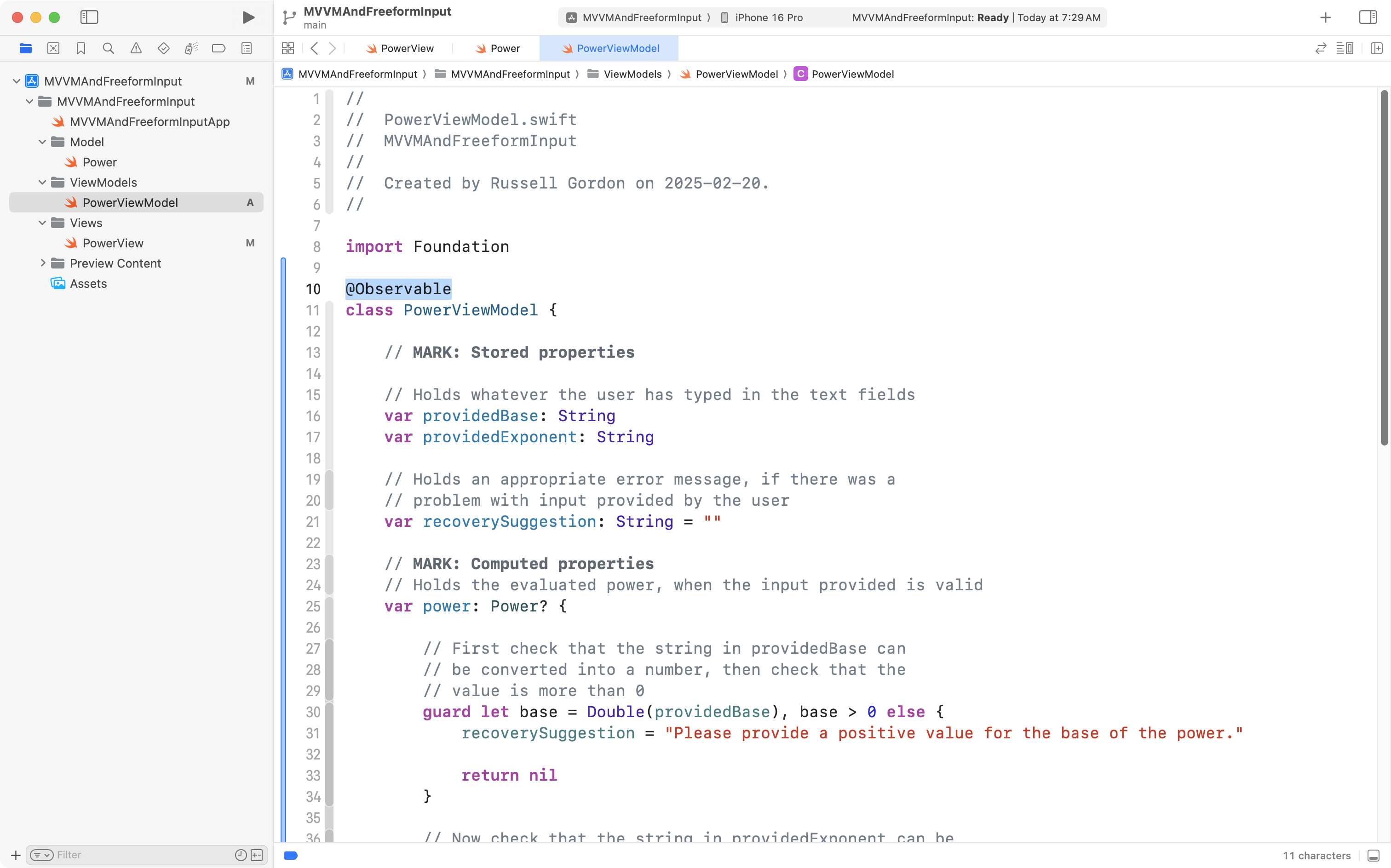 That’s all that we need to do! This makes use of the Observation framework, which does all of the heavy lifting to ensure the user interface updates when values inside the PowerViewModel class change.