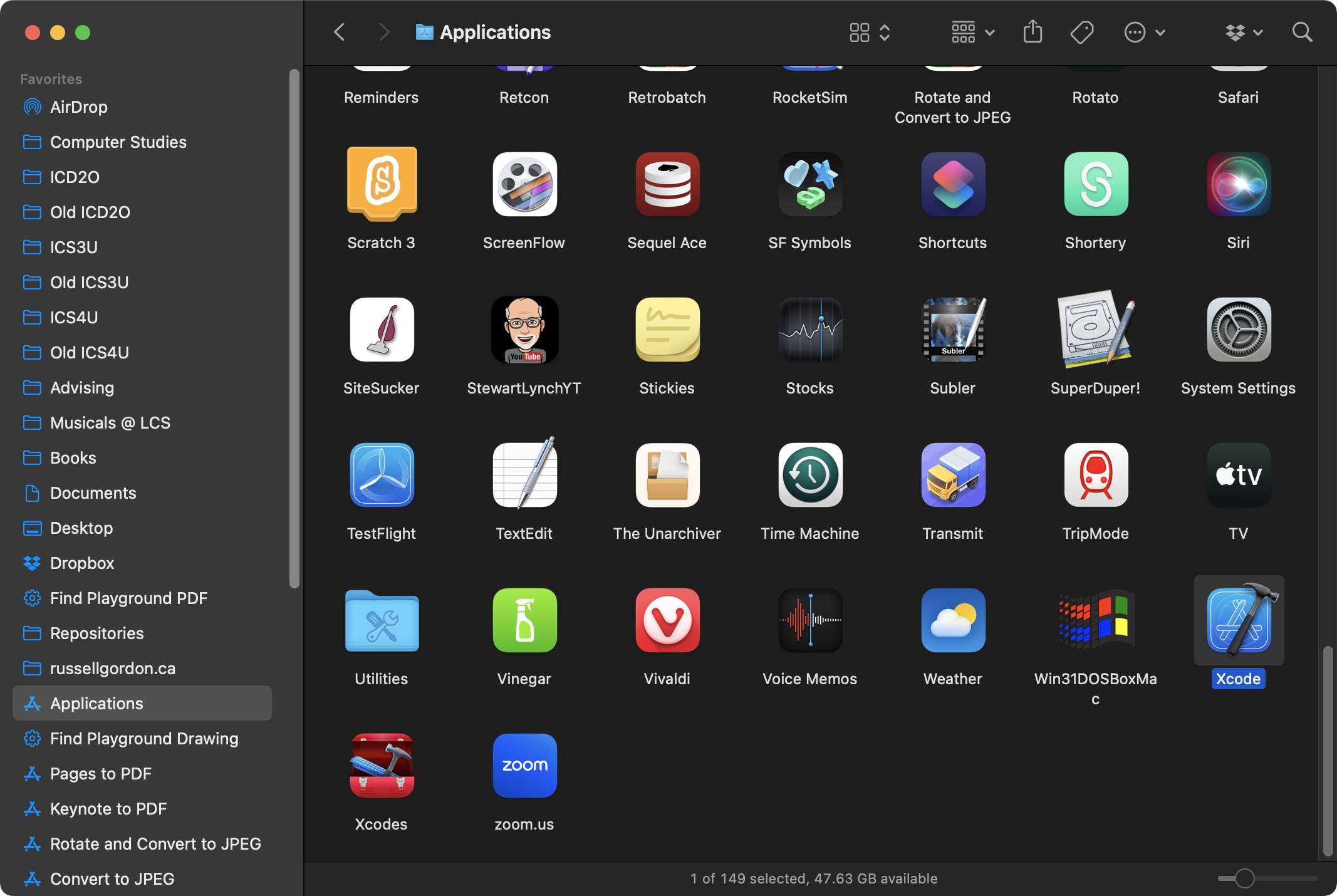 If you see Xcode installed as shown – with the name Xcode alone – please move that version to the trash on your system:
