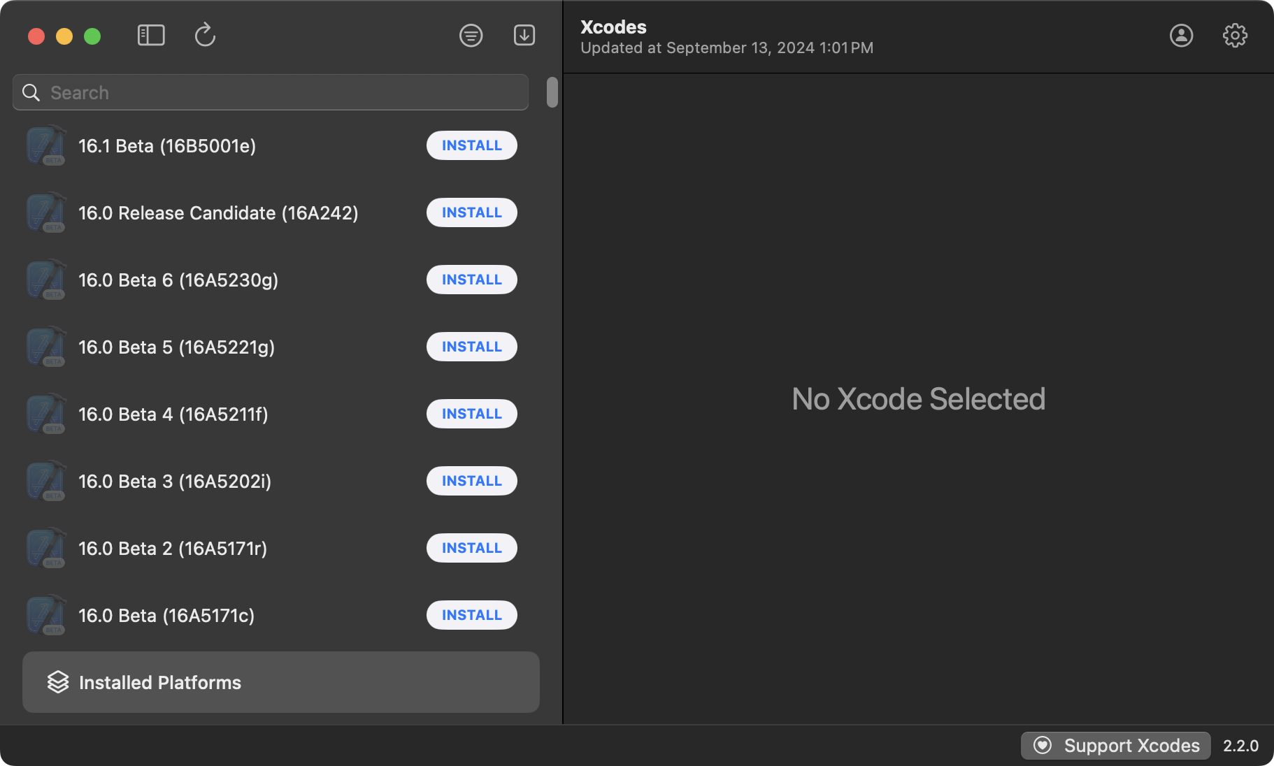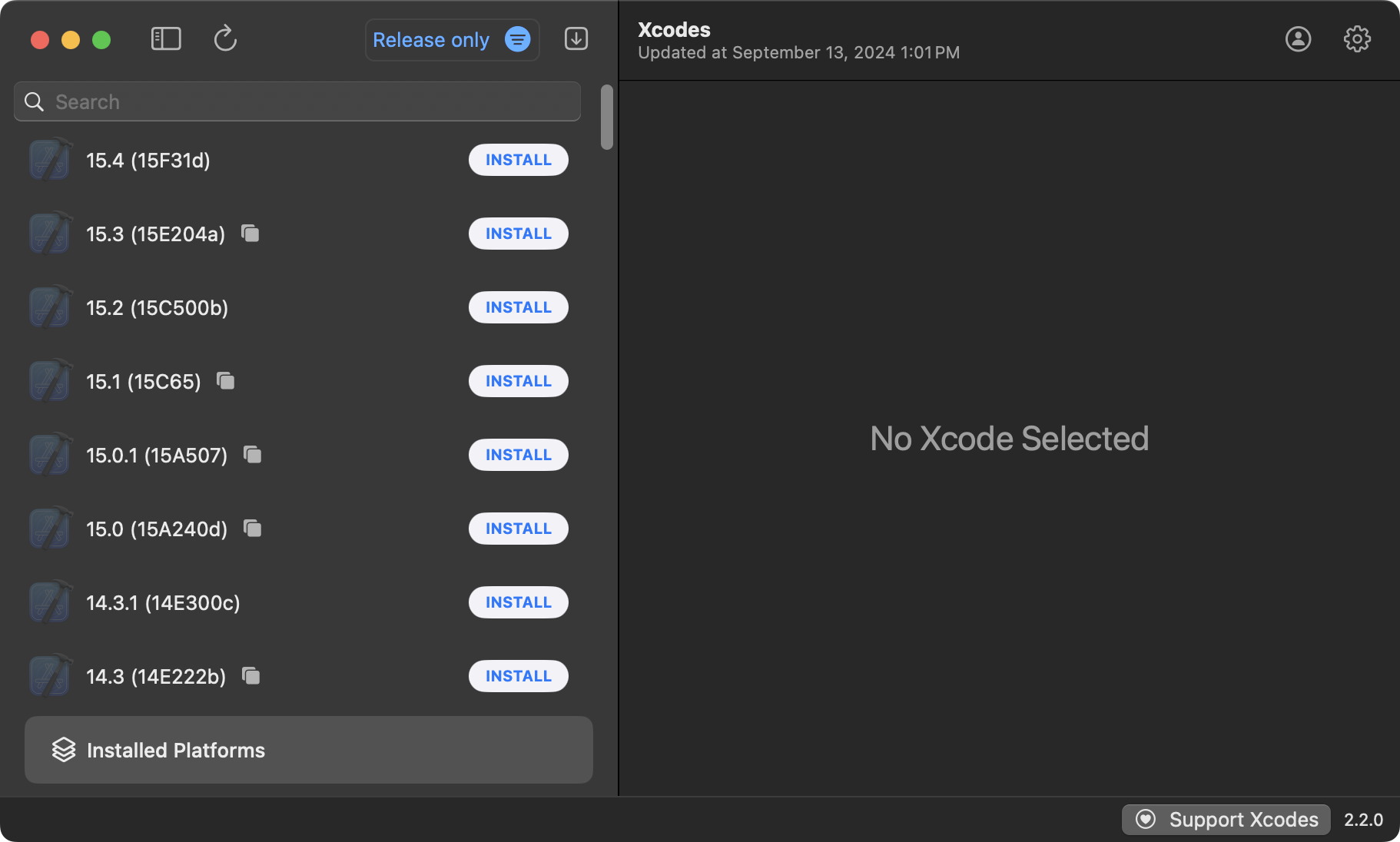 Now that you have signed in, you can use Xcodes to install the latest version of Xcode:
