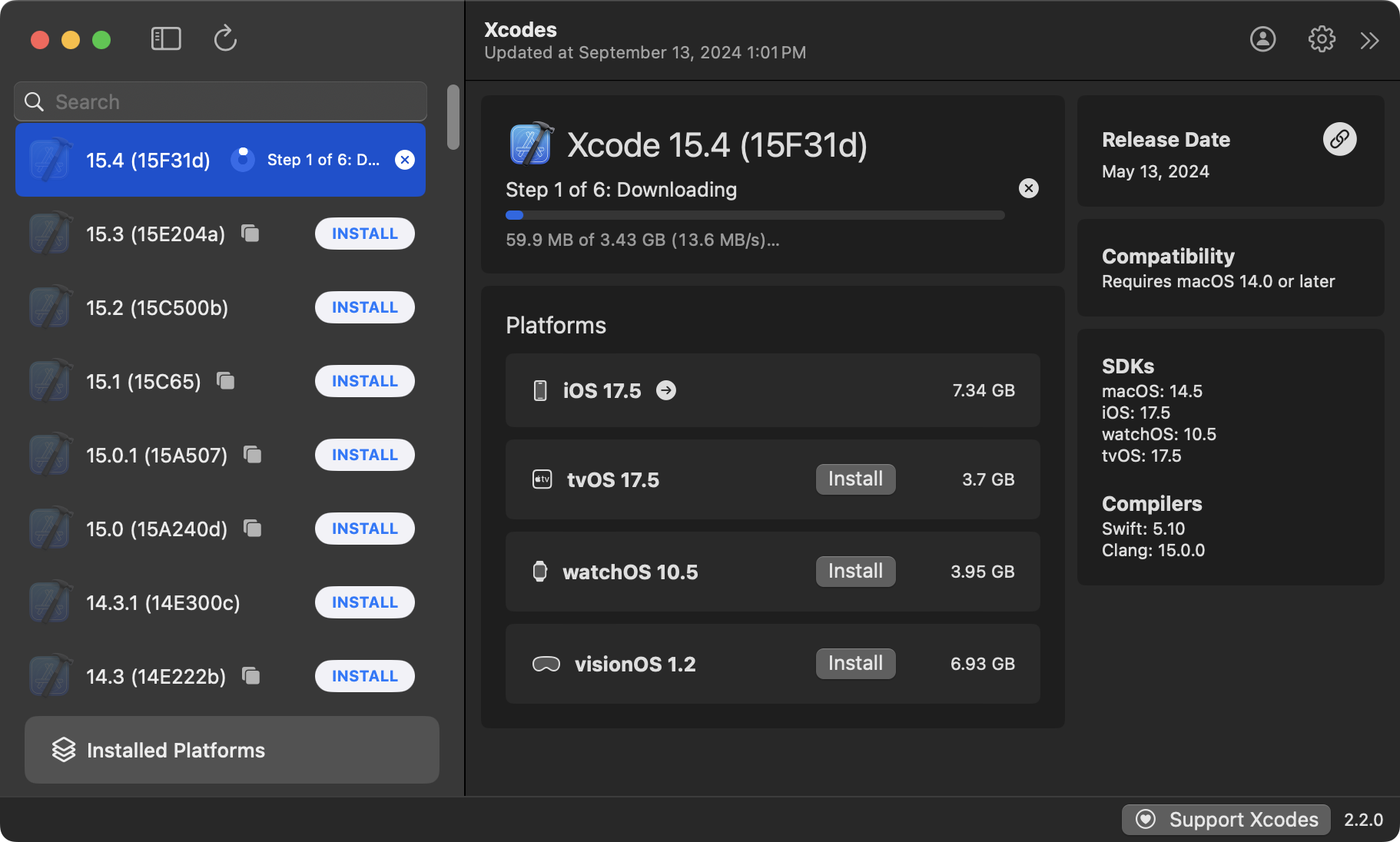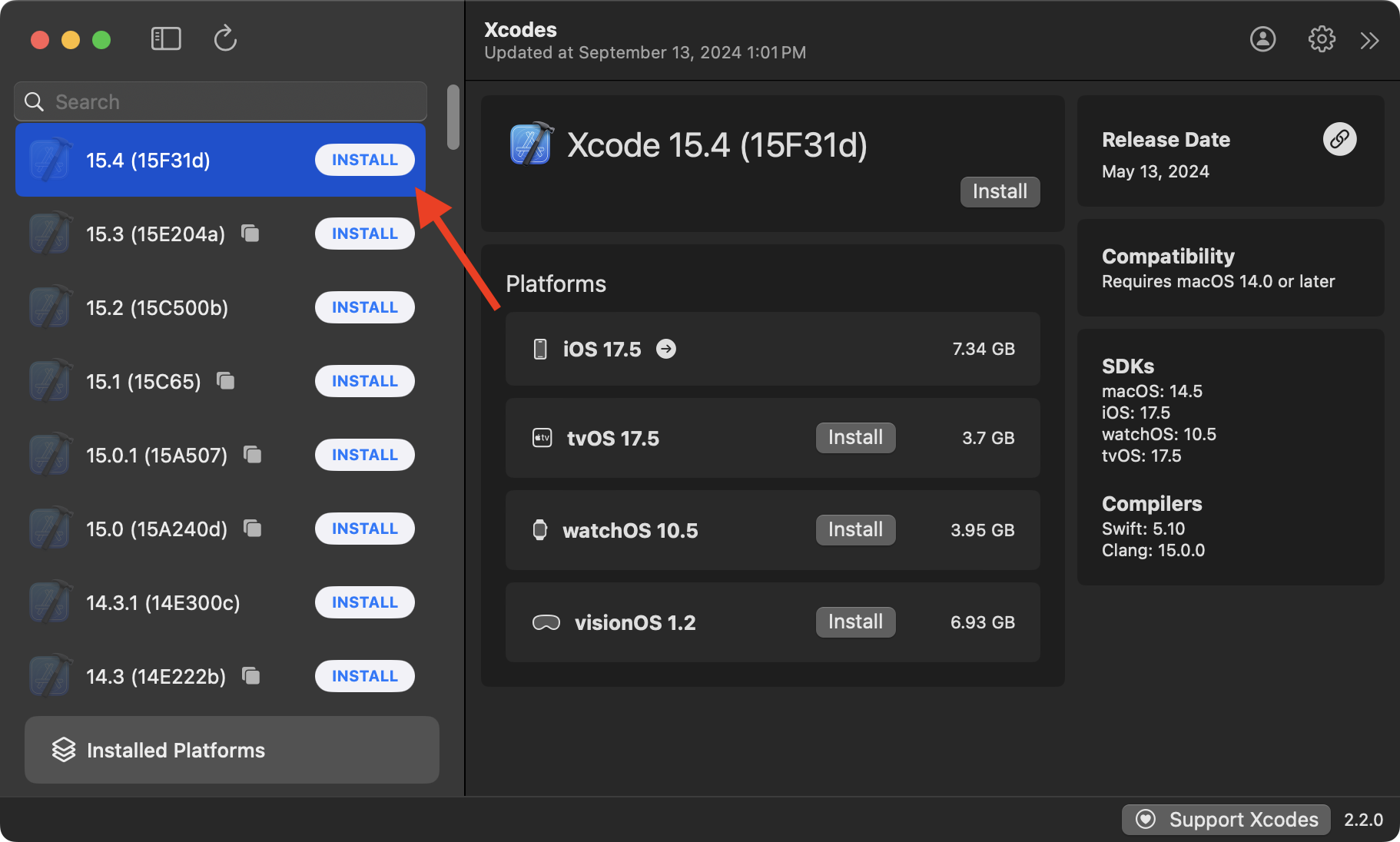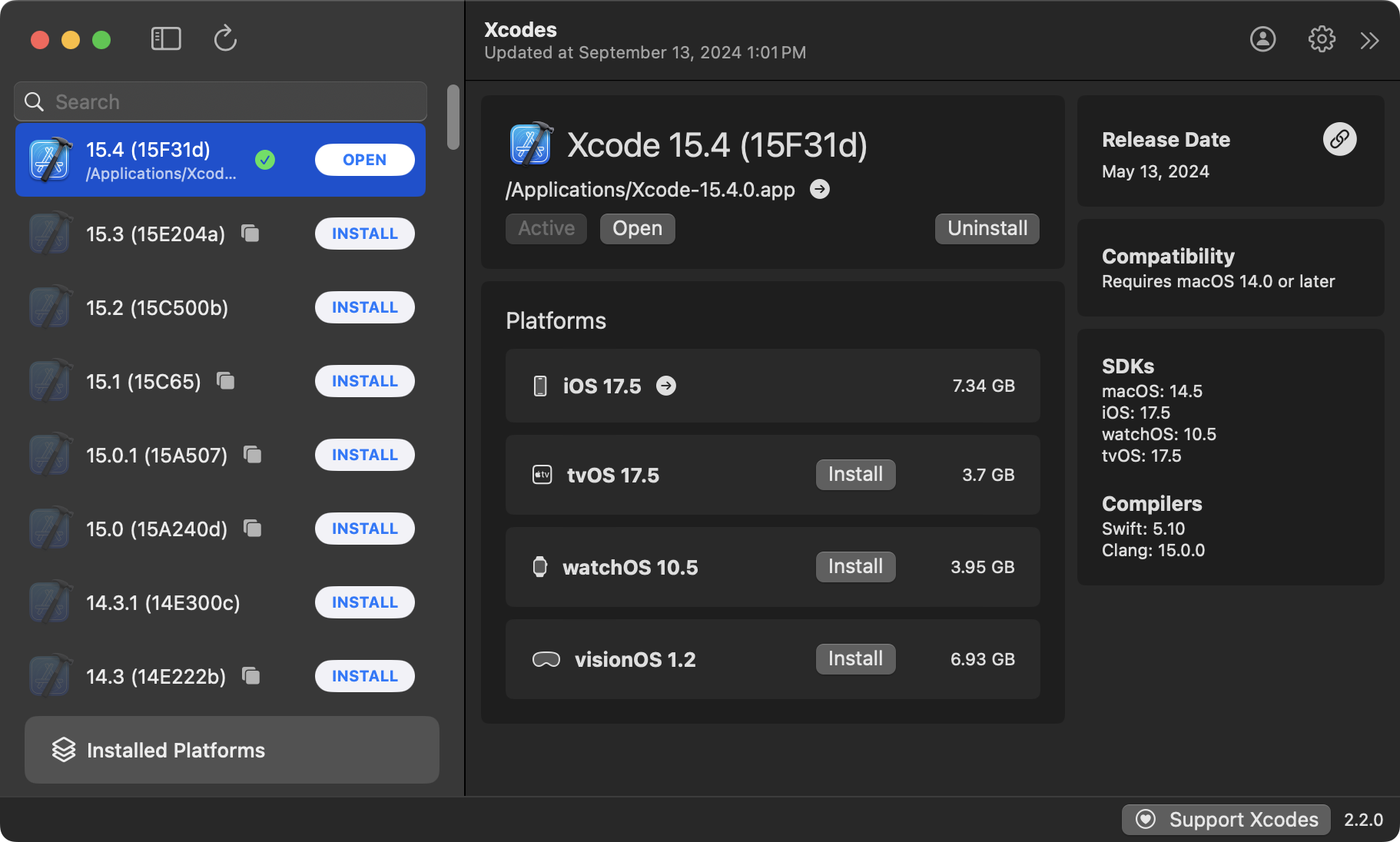 When this guide was authored, Xcode 15.4 was the most recent version of Xcode available.