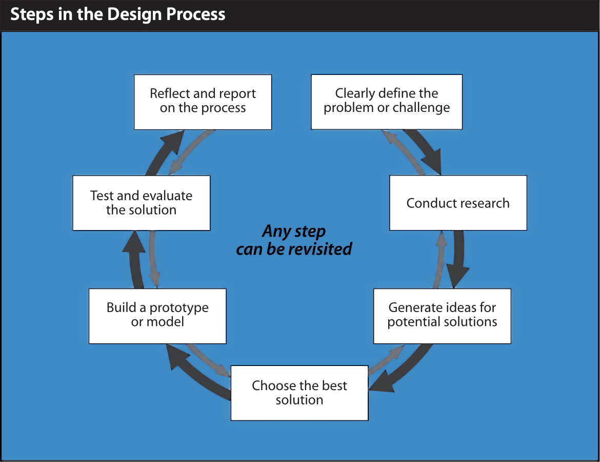 As described in our course outline, design is an iterative process, so each step can be revisited as needed: