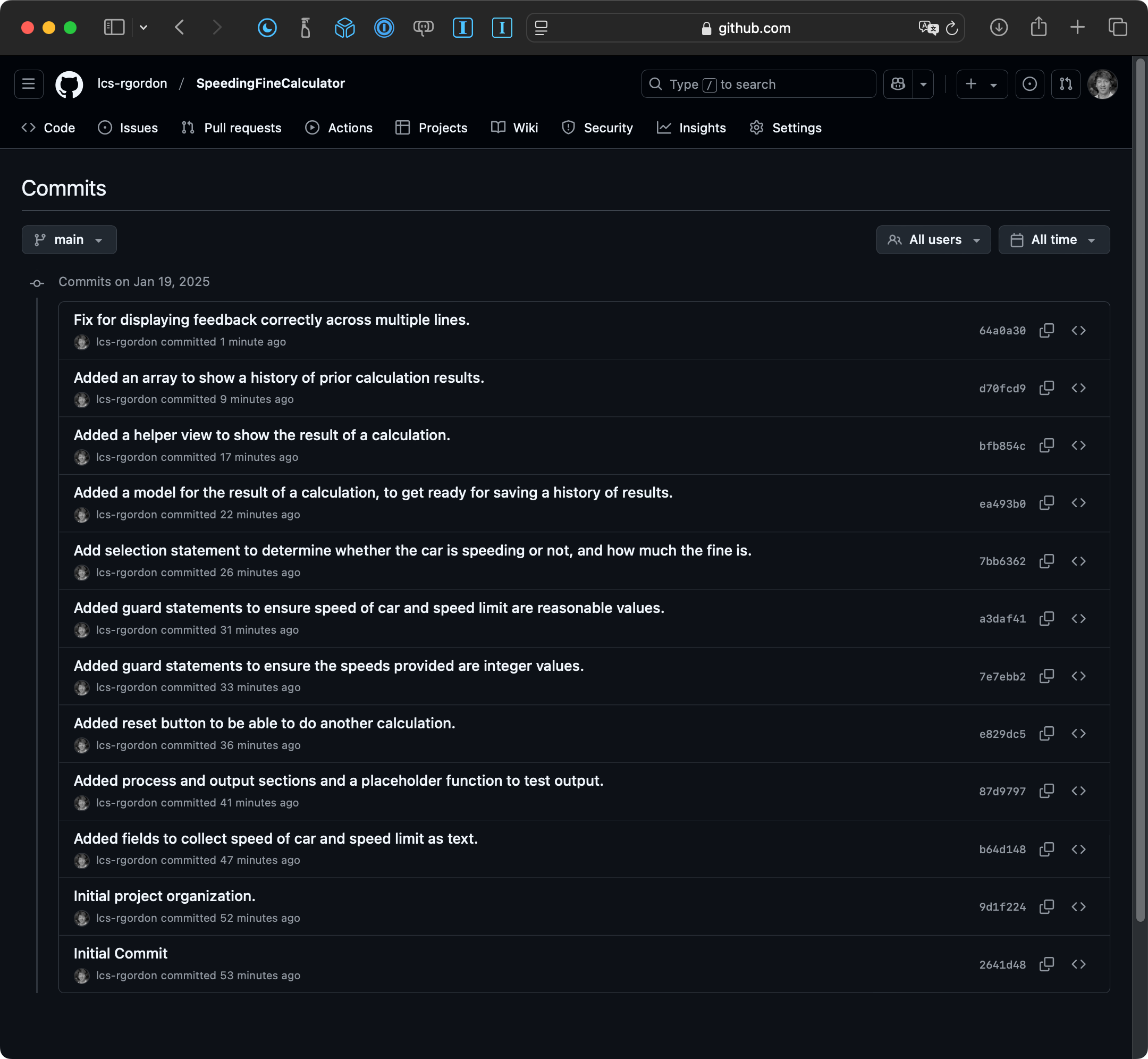 6. You have used source control well by committing and pushing your work to a remote on GitHub at regular intervals.