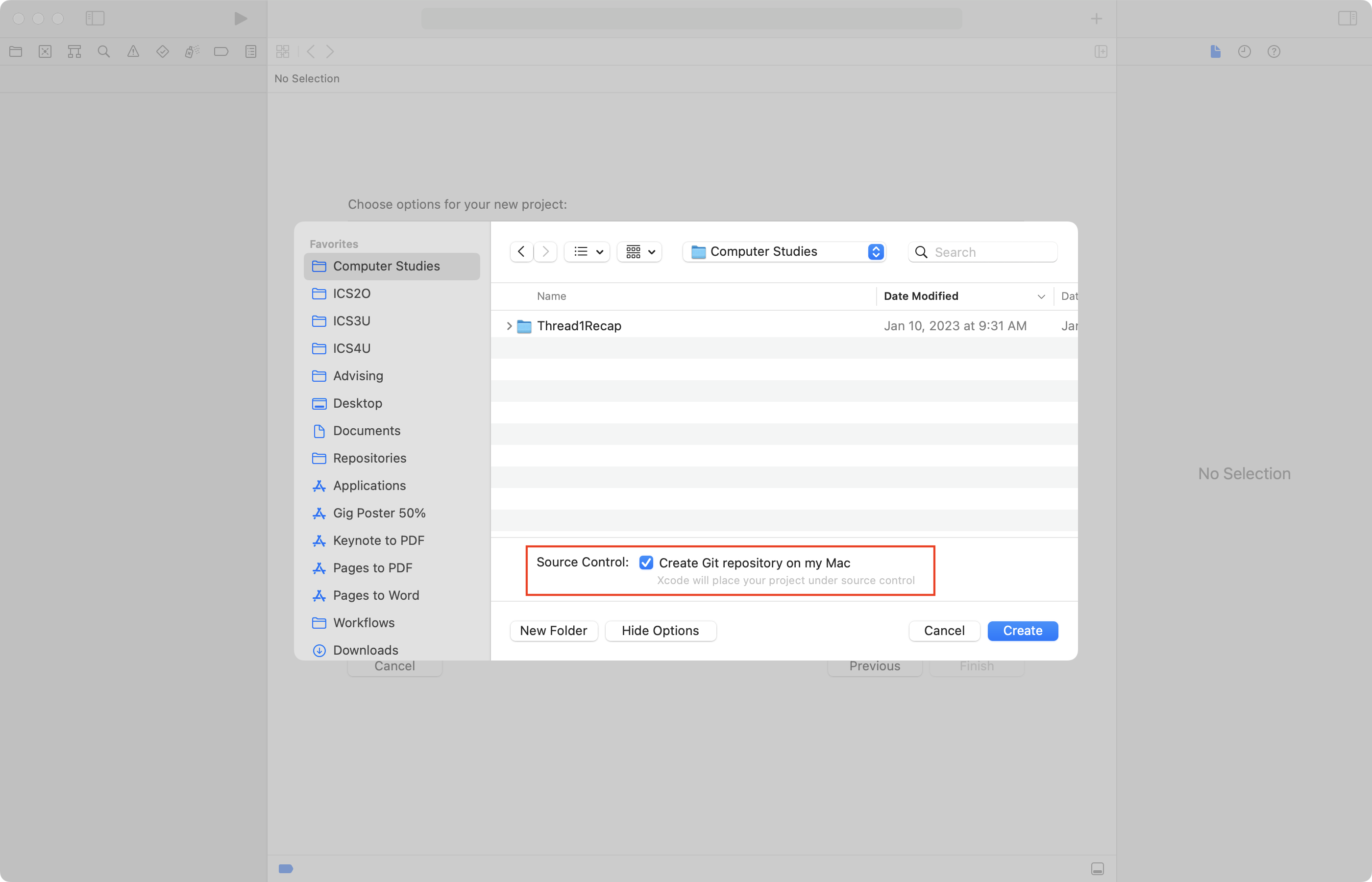 3. Save the app in your Computer Studies folder, ensuring that source control is enabled: