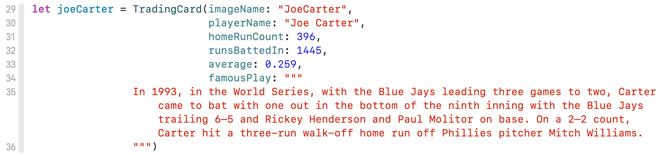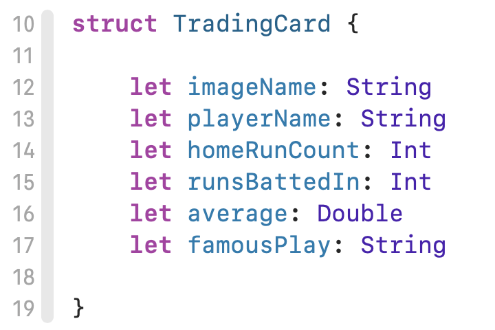 5. Applied abstraction by converting your static layout to use a property named card (or similar) that accepts an instance of your TradingCard structure.