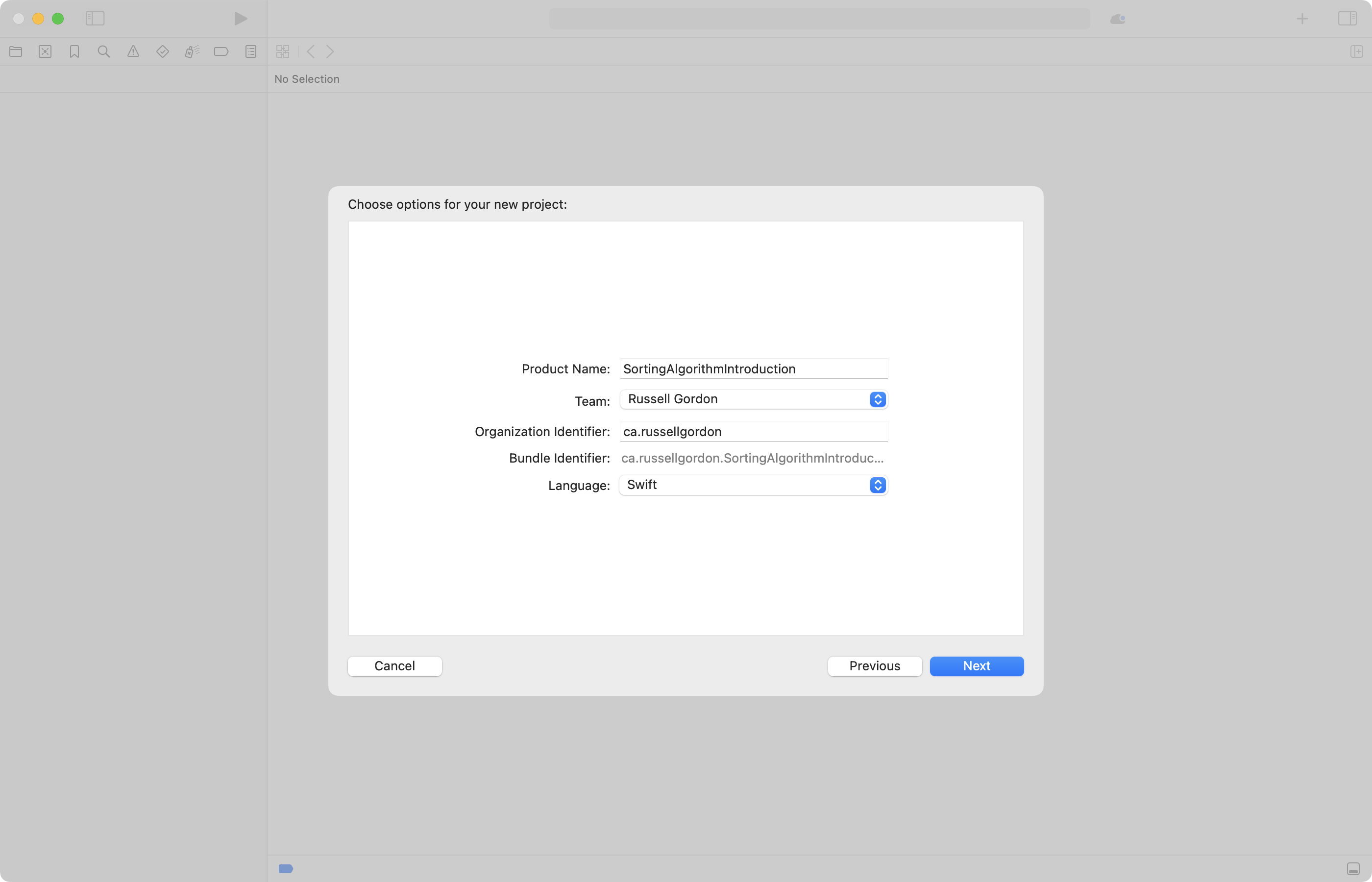 On the next screen, give your project a descriptive name, based on what idea you are exploring – in this example, sorting algorithms – then click Next: