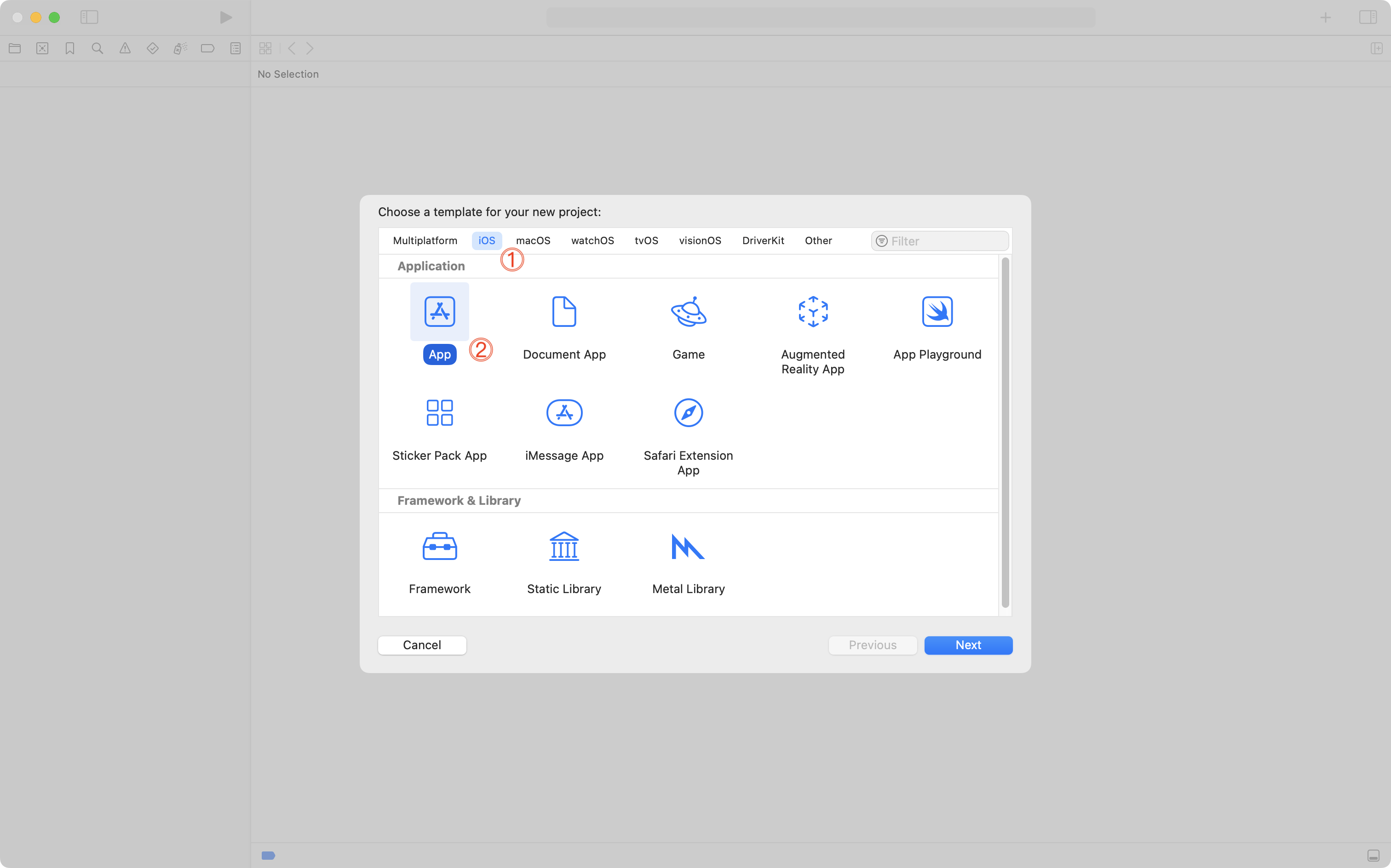 You will see the following window – here, choose the iOS tab, then App, and then Next: