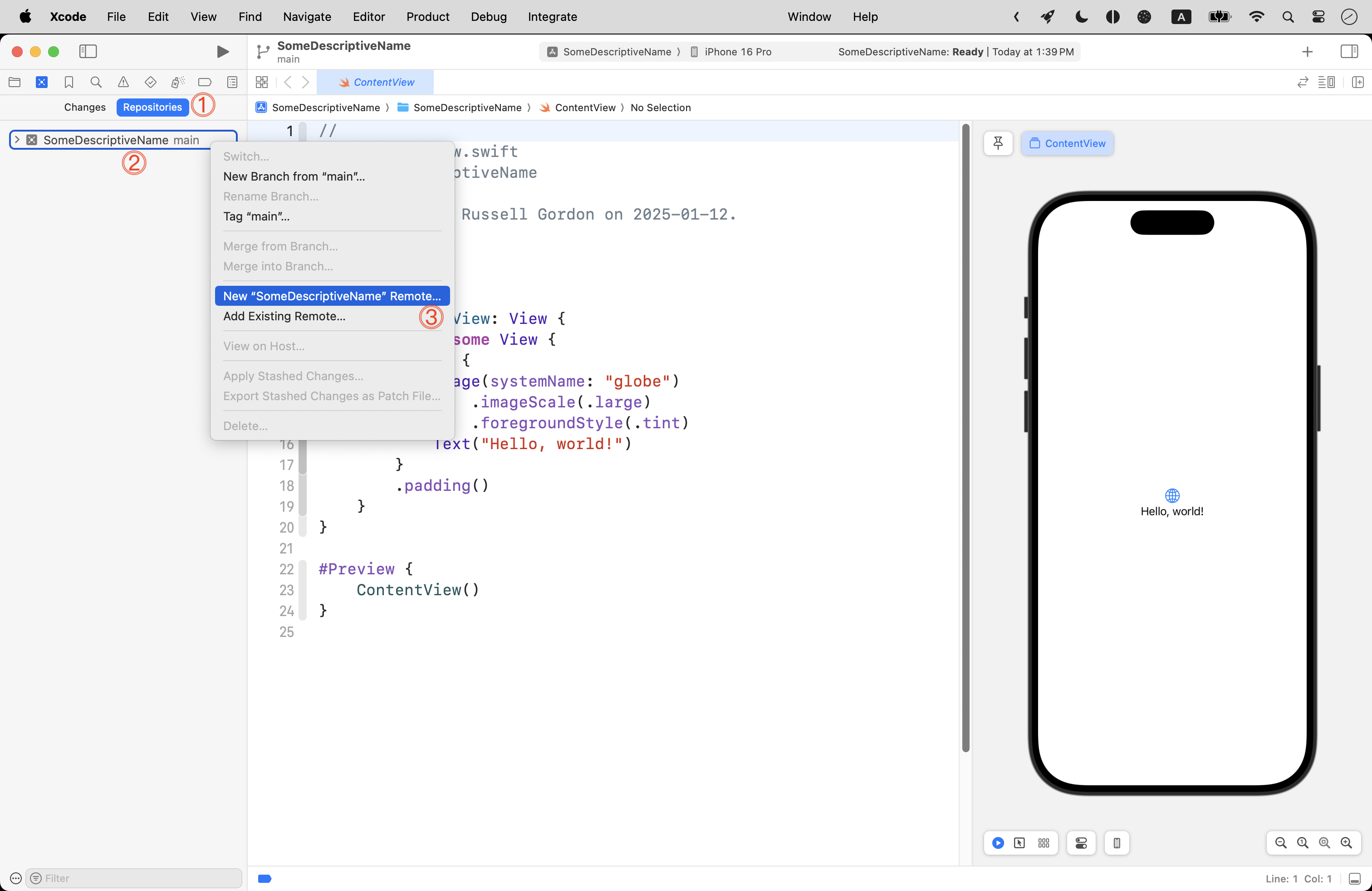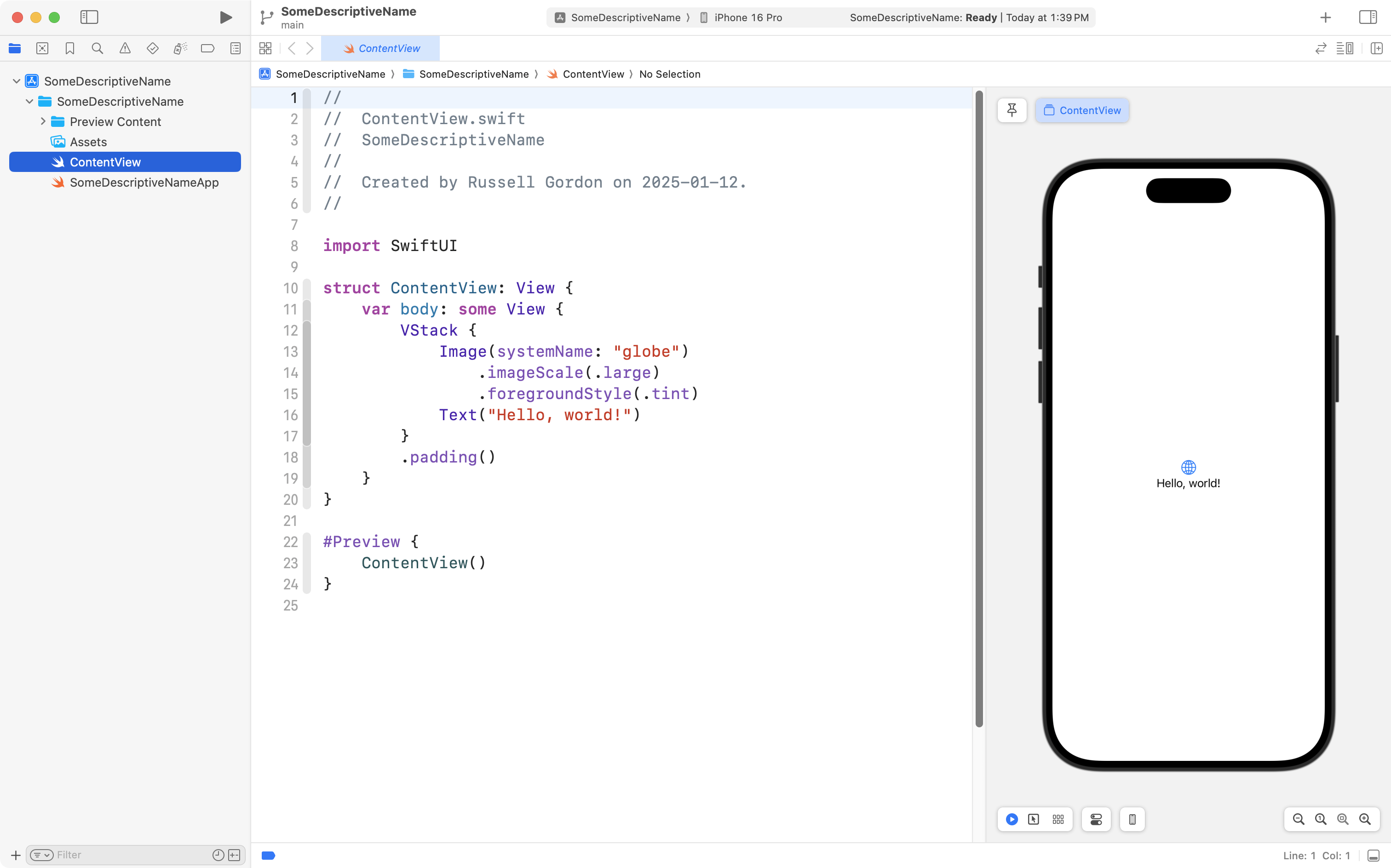 Now press Command-1 to return to the project navigator: