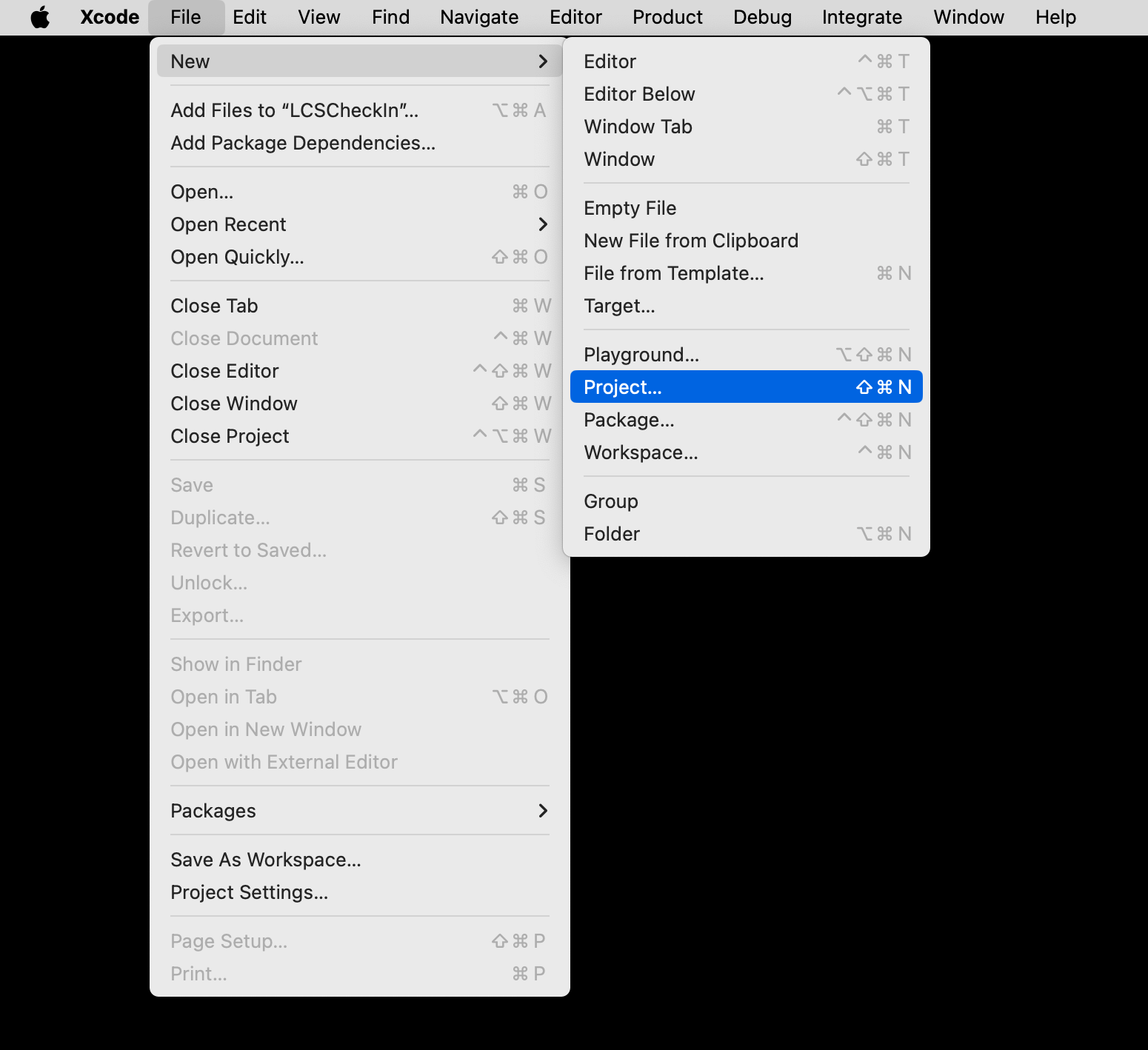 From the menu bar at top left, choose File > New > Project…:
