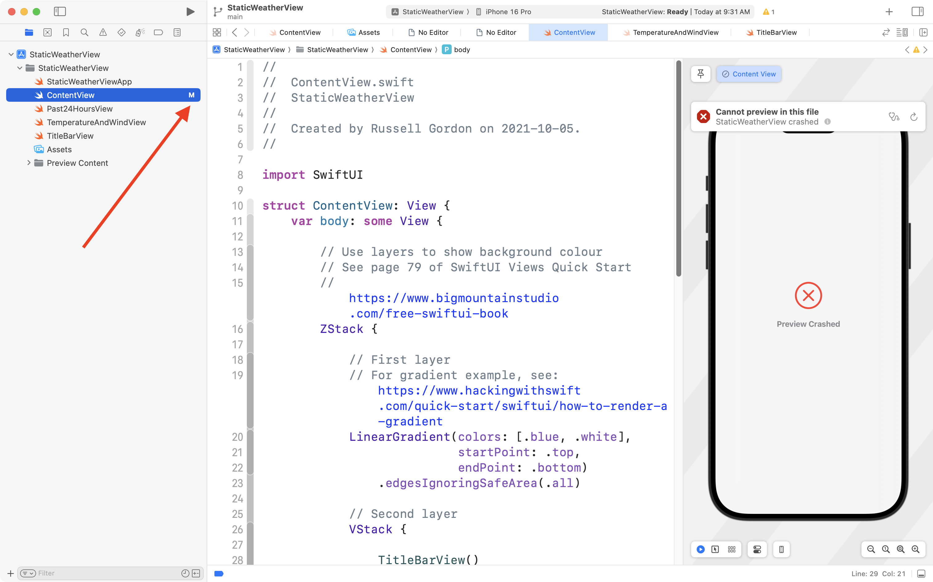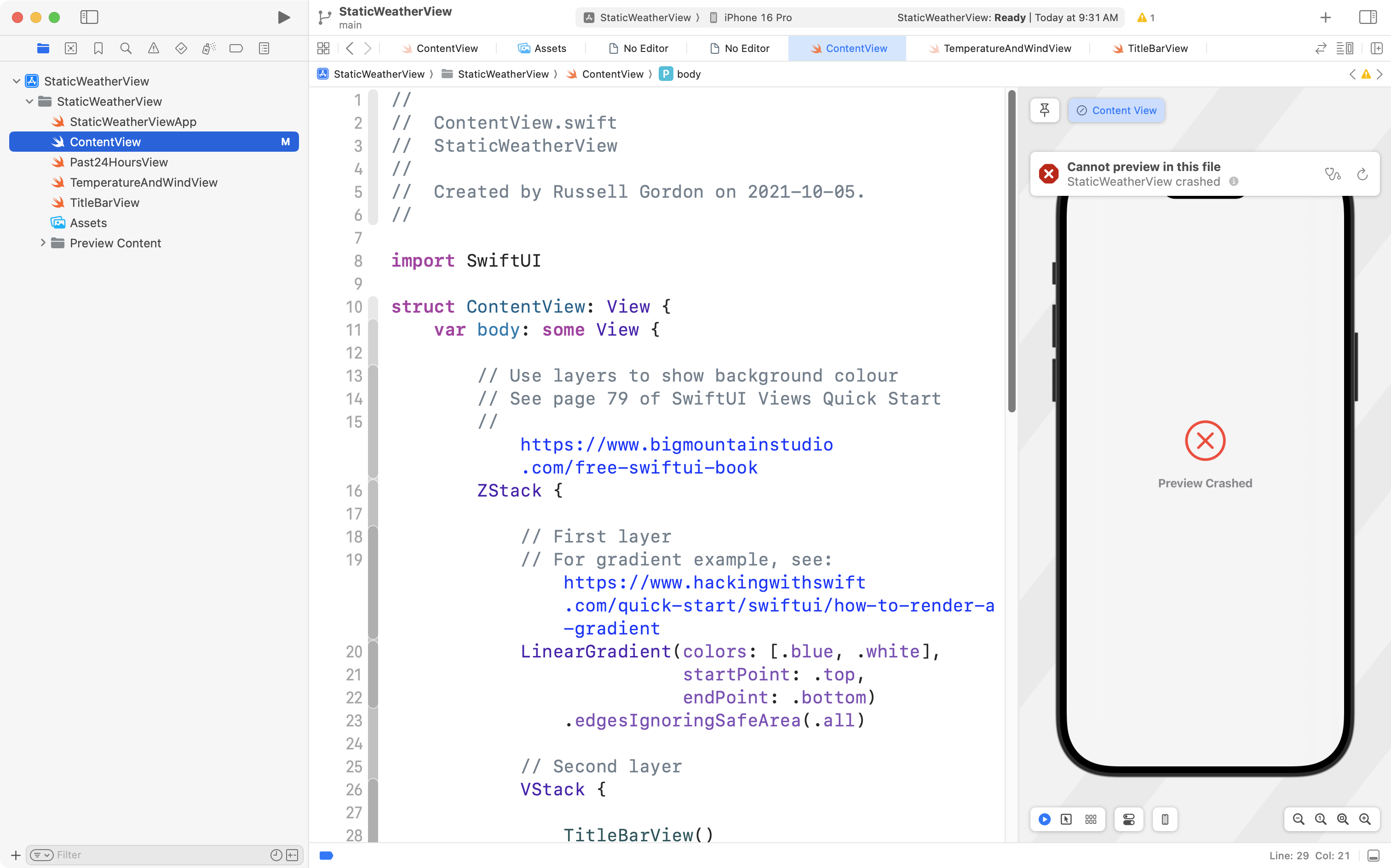 Sometimes we are making changes to our code, and an error pops up, or the Preview window is crashing: