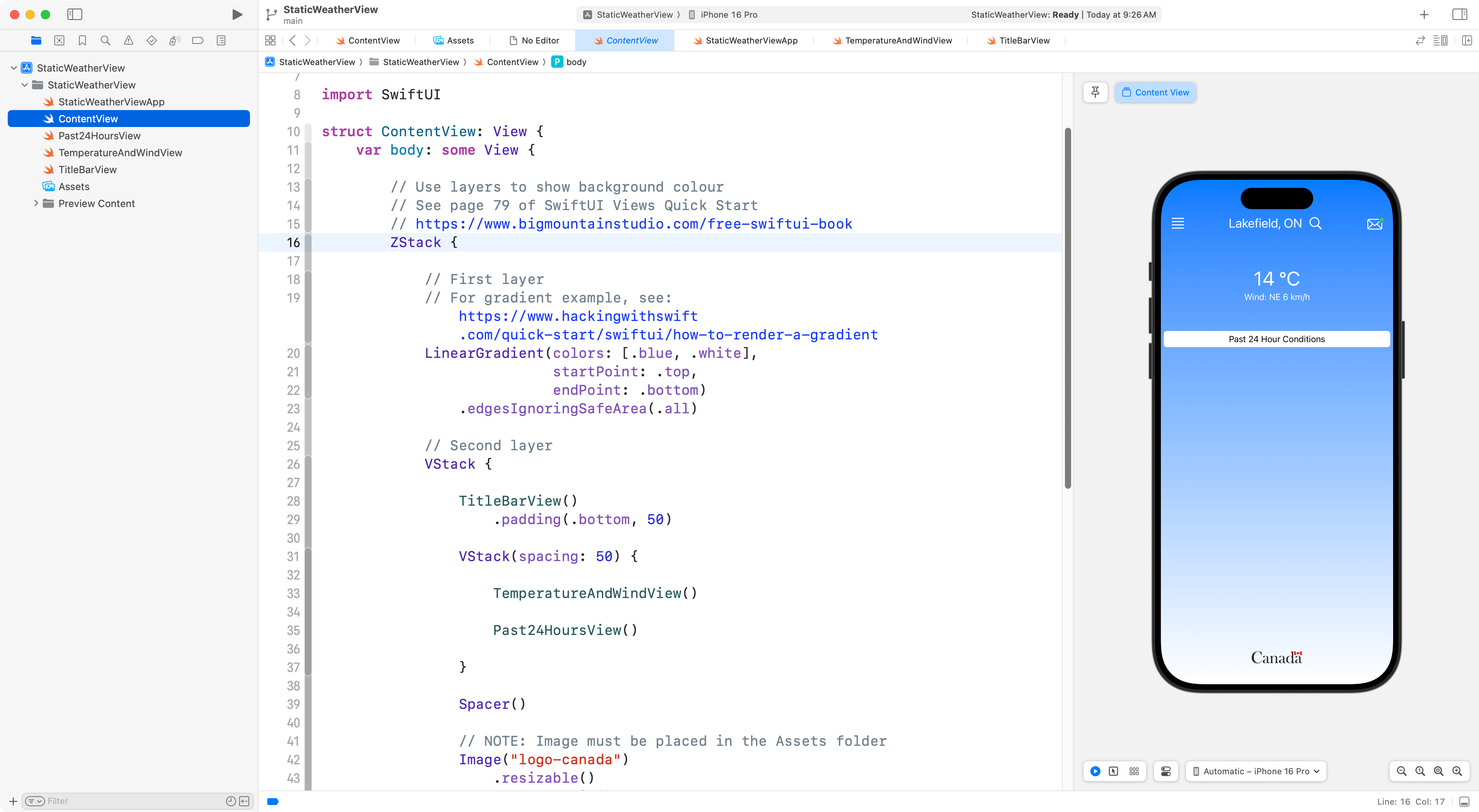 It is the start of a reproduction of the user interface of the Environment Canada weather prediction app.